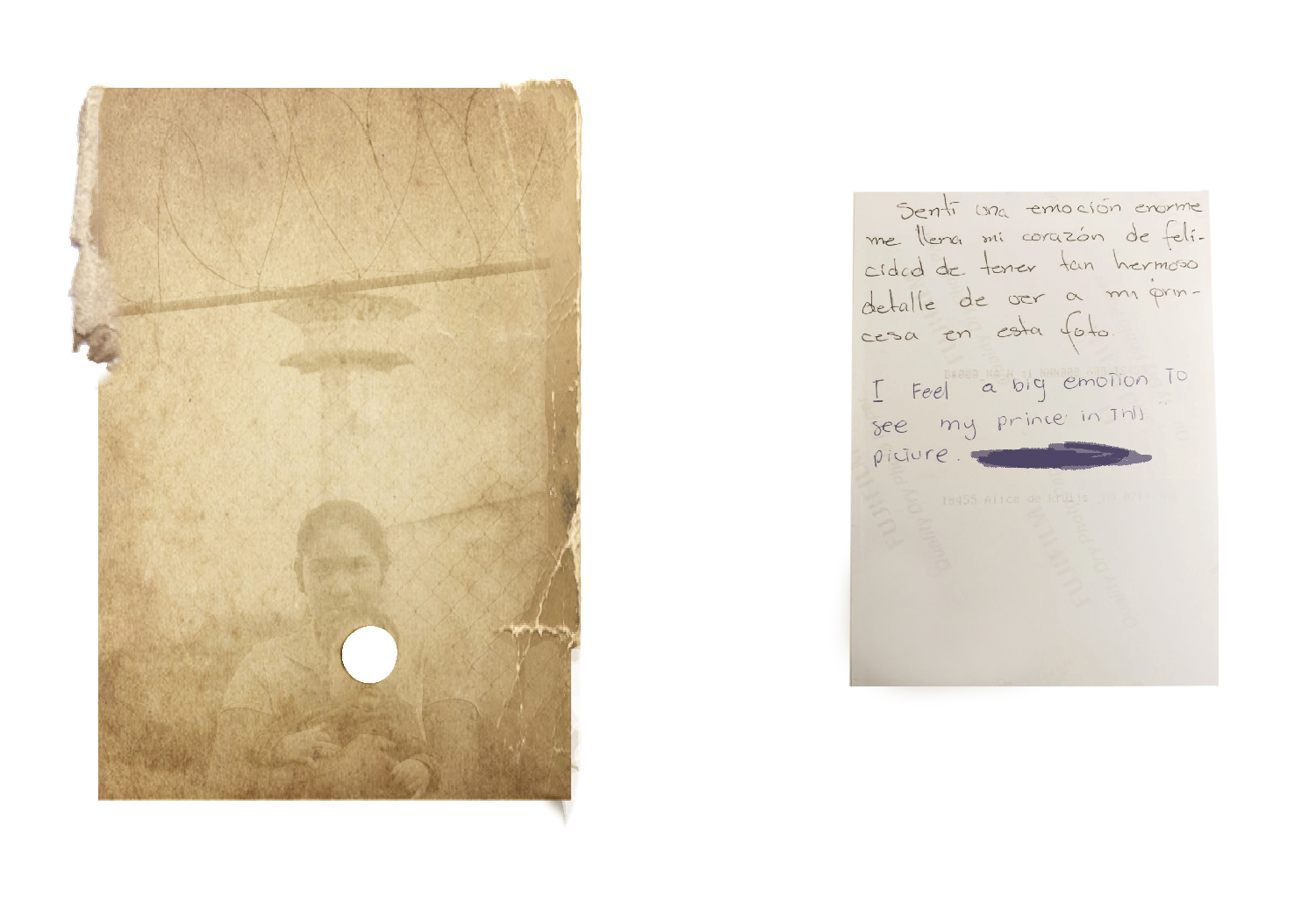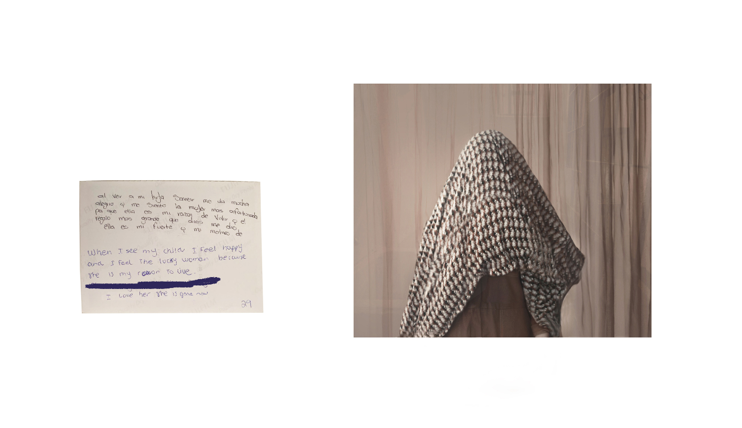 A part of the project are the written messages the mothers wrote on the backside of several photos.The mothers received two photos. One of them was sent back to me with a personal message.”