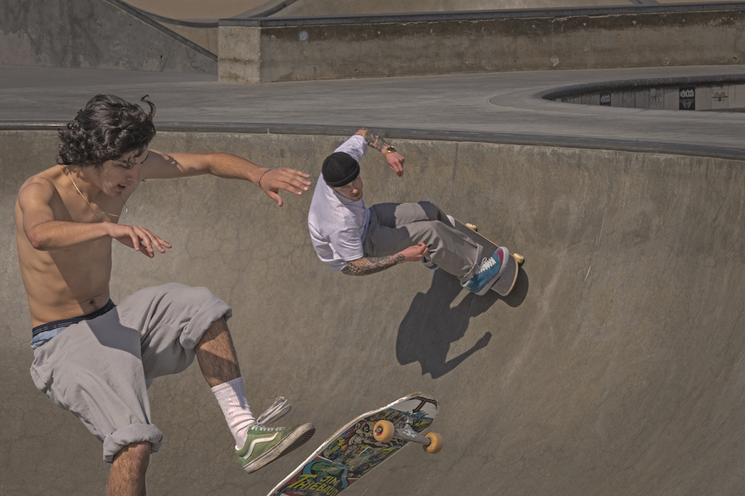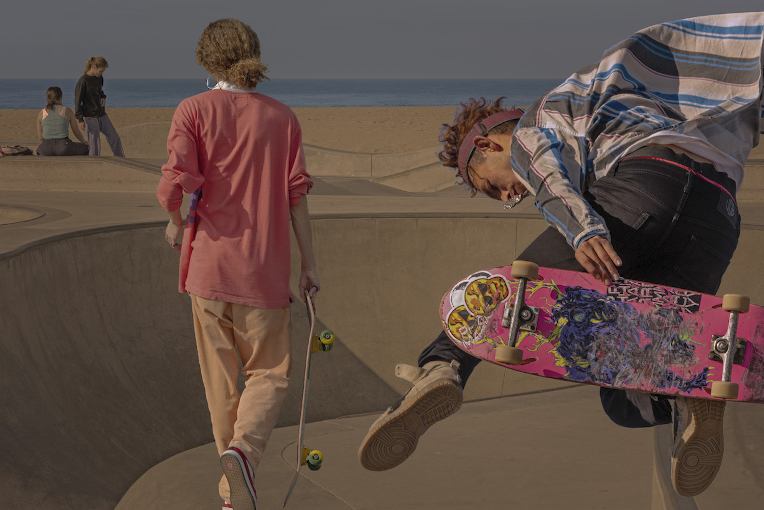 I don’t skateboard and never did, so I can’t directly speak to this. My observation of skateboard people is that they are either fearless or have a serious death wish. They are surfing on concrete. Some of them wear helmets and knee and elbow guards; however, I never use those people in my work. I guess the fearlessness appeals to me and makes the images exciting.