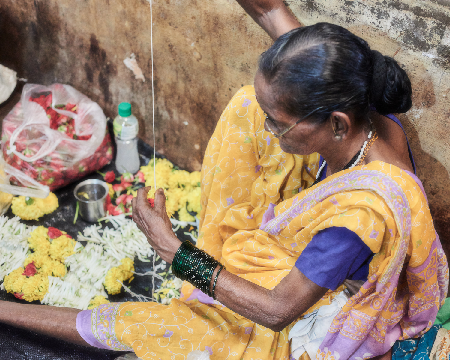 Discover the reportage about the other indian flowers, the indian worker women who actually make and sell them below.