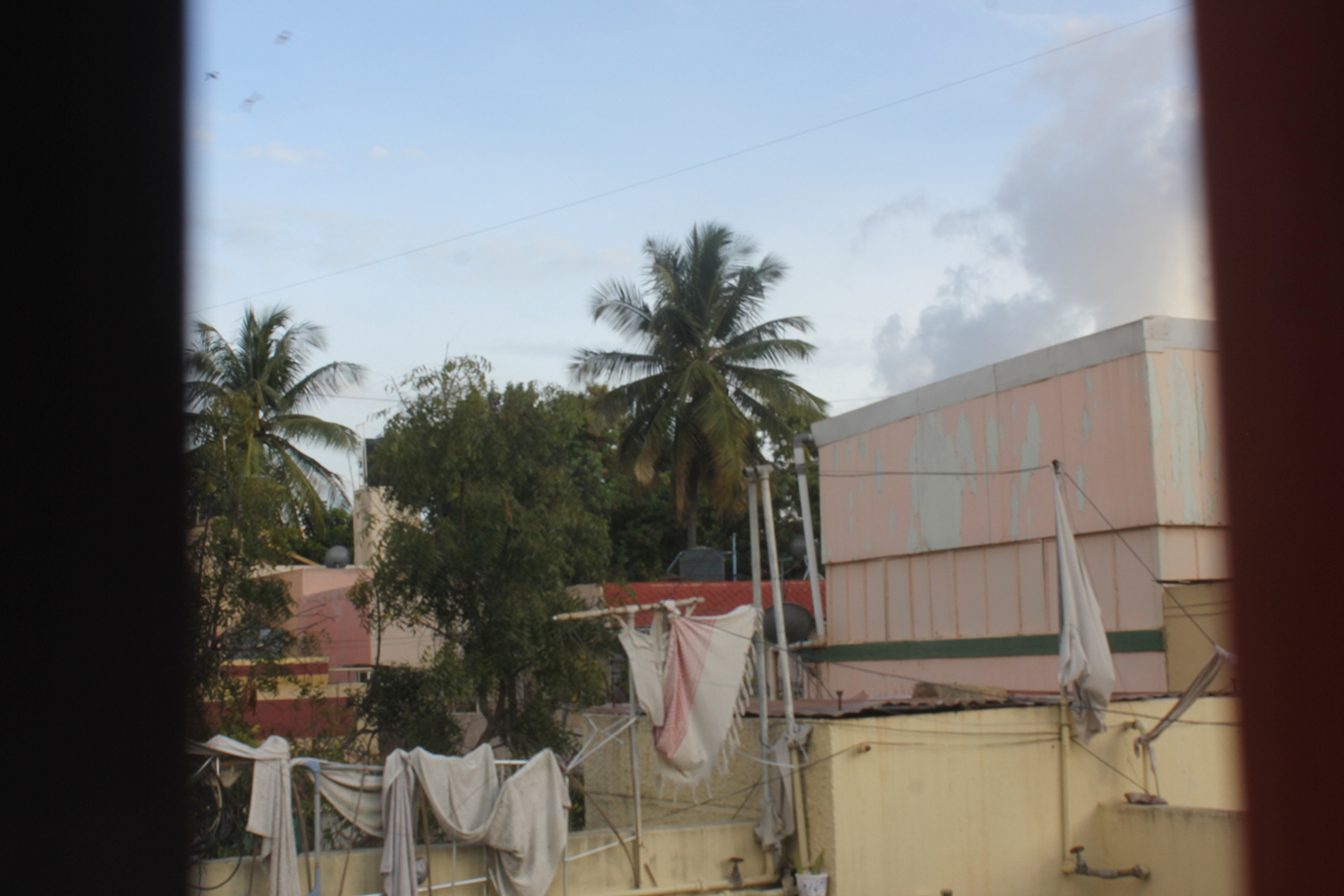 Most likely sunny, ‘Home in the City’ with change of weather in variations of sun. Shining light ‘lashes’ on an orange-brown clay surface fragmented by a plethora of trees, blossoms and coconut produce at every corner.