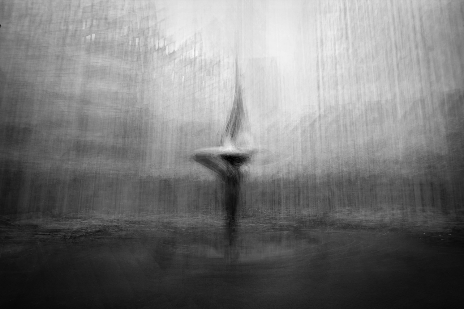Machalowski photographs buildings, cityscapes and trees in the city from several positions on one frame. The objects are taken from different perspectives, as well as different visitors would look at them. The multiplication and intensification of positions and fields of view appear to distort the structures and reduce them to their core. They literally vibrate under the attempt to capture the time.