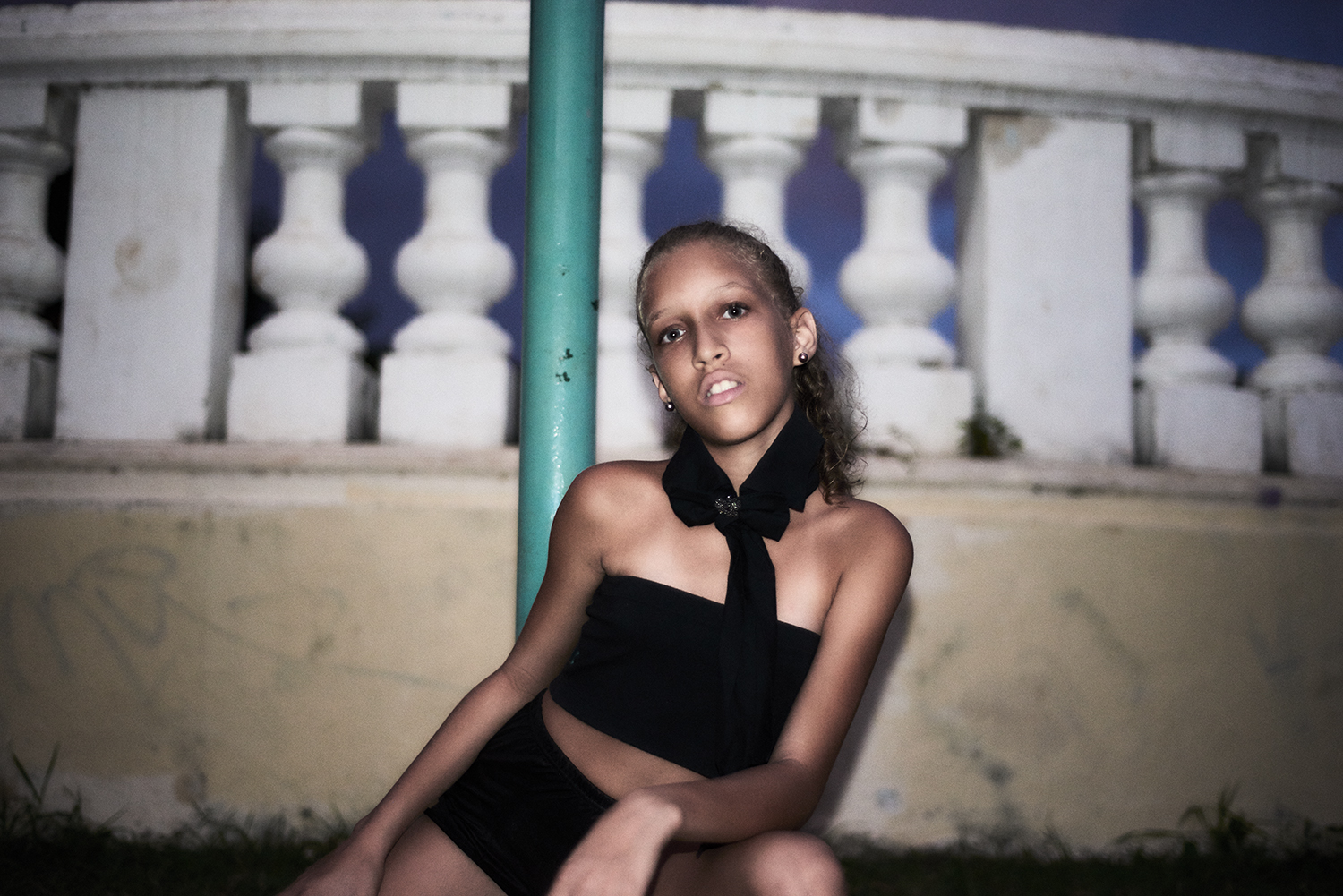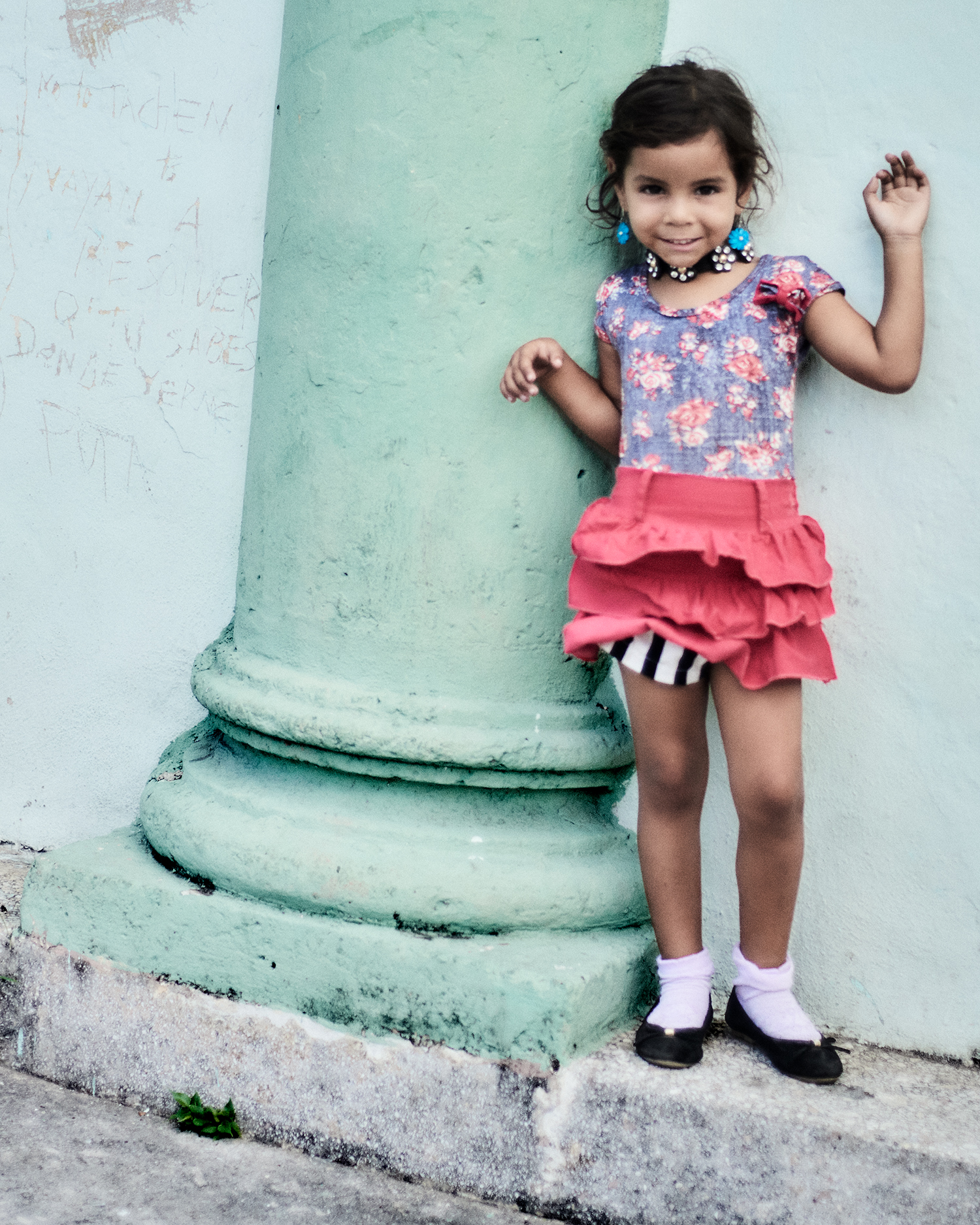 Merli ( 3 ) is a clown or plays with her dolls in Havana, Cuba