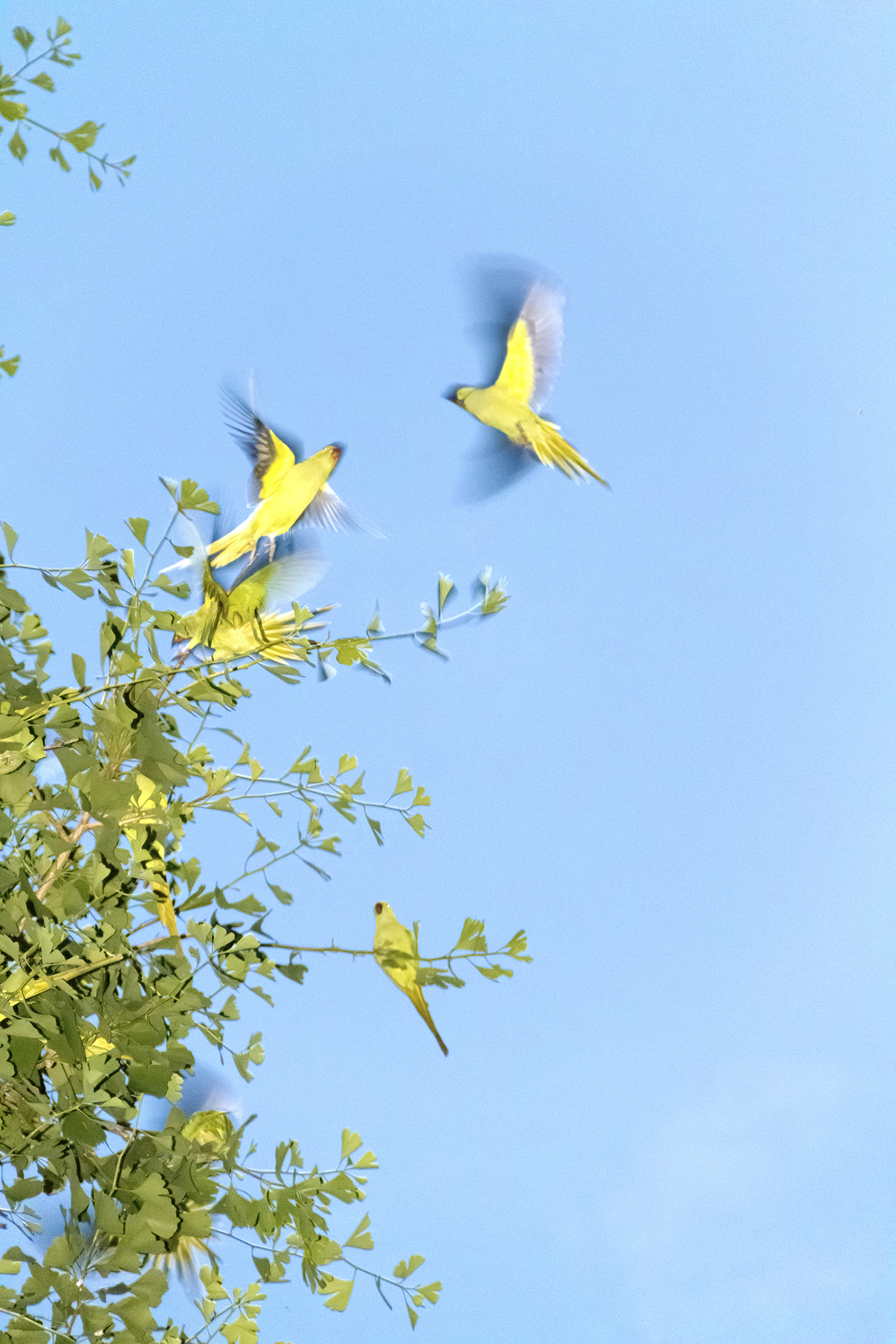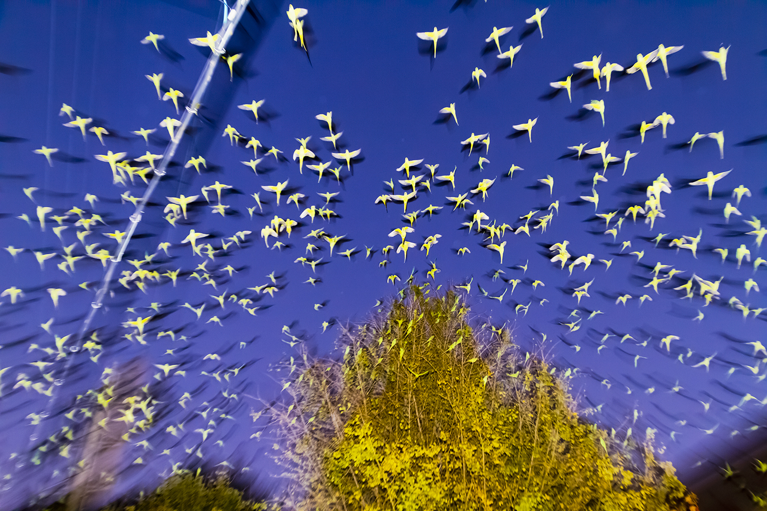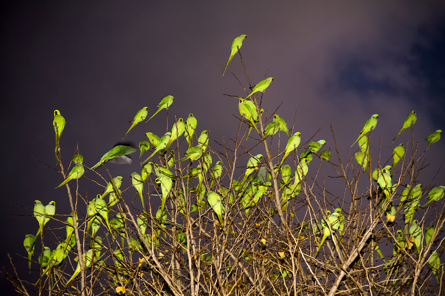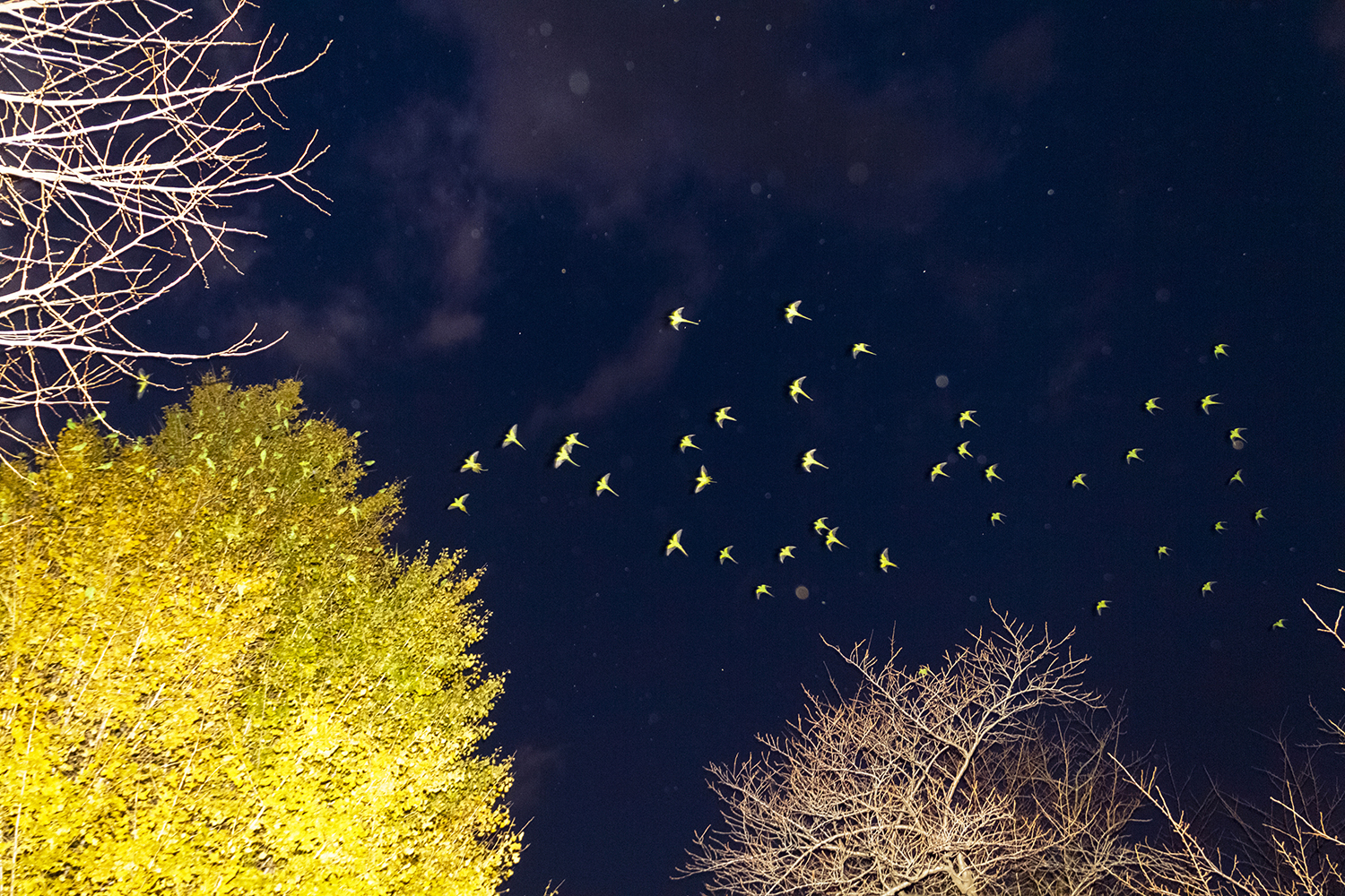 When I saw an immense flock of parrots — several hundred birds at once — I was very scared. It was like I had fallen into the movie The Birds directed by Hitchcock.
