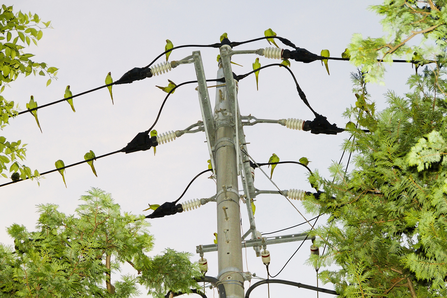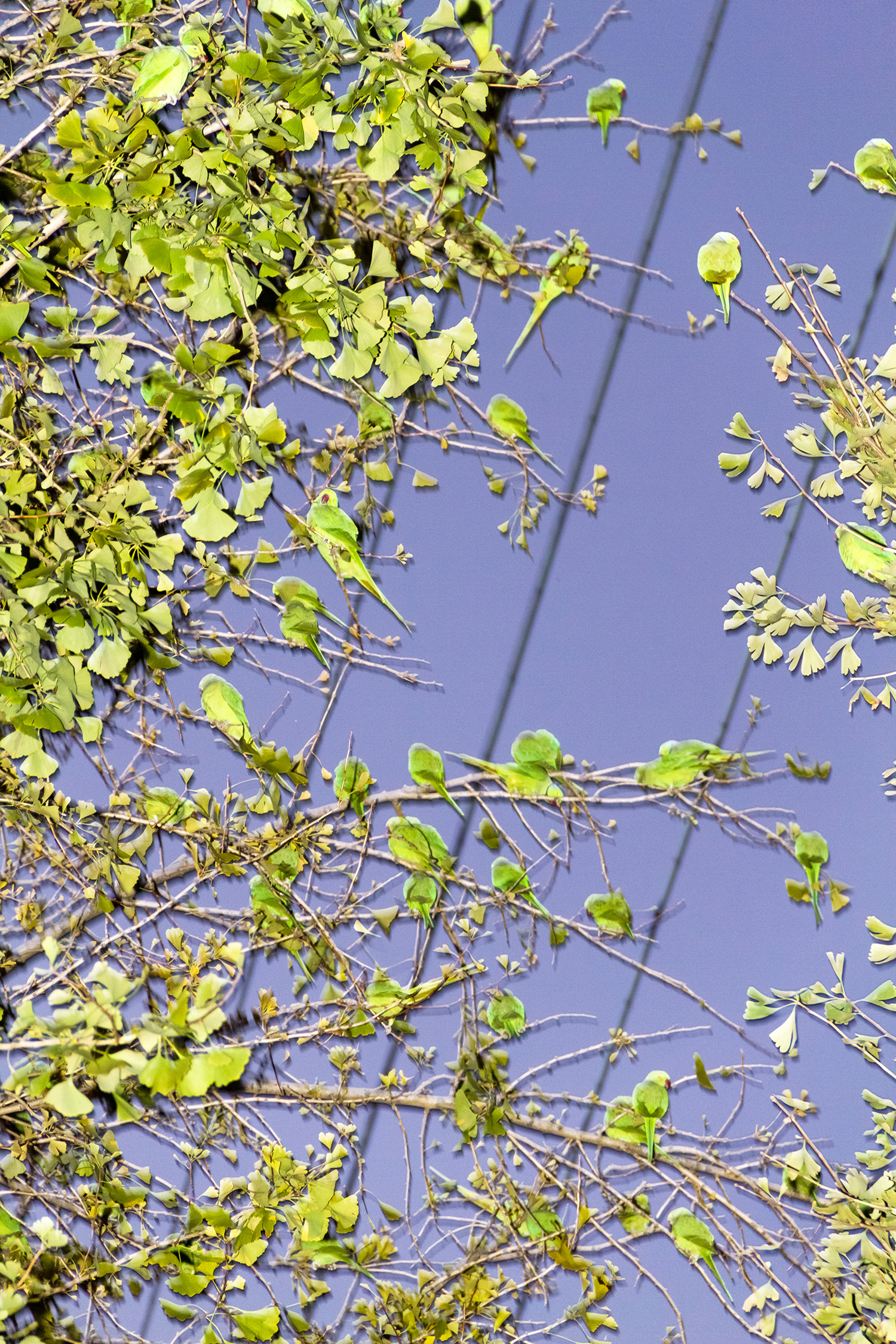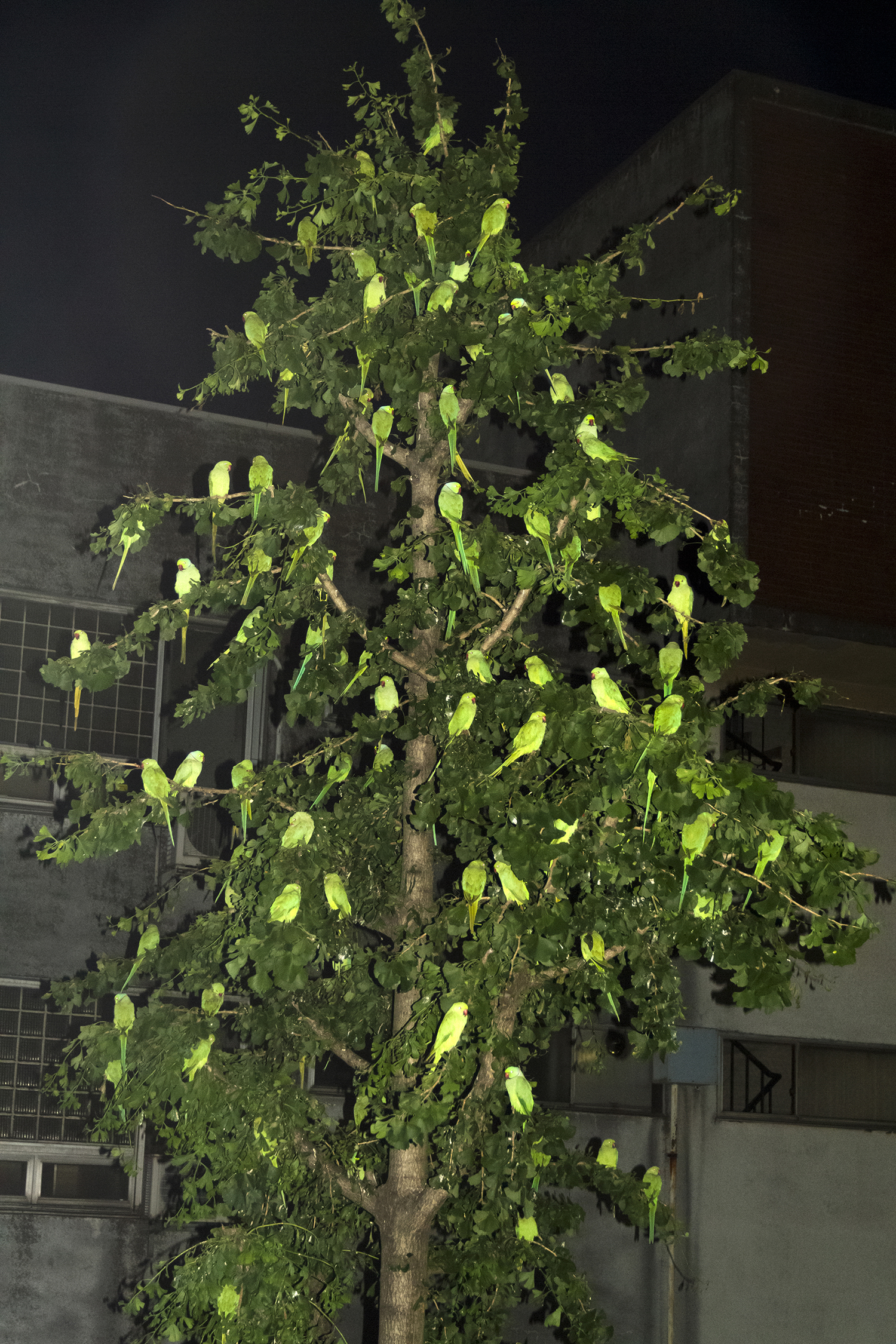 The birds in these photos were brought to Japan as pets from the tropics in the 1970s, and went feral, settling in Tokyo.